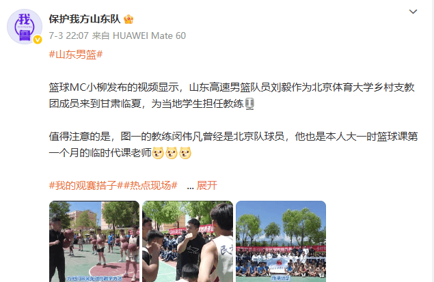 不过3日晚上22点07分,据媒体人透露最新消息显示,篮球MC小柳发布的视频显示,山东高速男篮队员刘毅作为北京体育大学乡村支教团成员来到甘肃临夏,为当地学生担任教练。