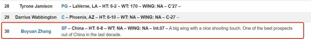 美国选秀媒体NBA Draft Room公布了28届选秀榜单,显示张博源届时会在首轮第30顺位被选中。
