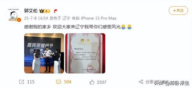 郭艾伦虽然离开辽宁男篮,但他依然是辽宁的代表性球星。如今郭艾伦通过社媒宣布被聘为辽宁文旅推荐大使,郭艾伦晒出自己的聘书,同时也是写道“感谢我的家乡,欢迎大家来辽宁,我带你们感受风光。”