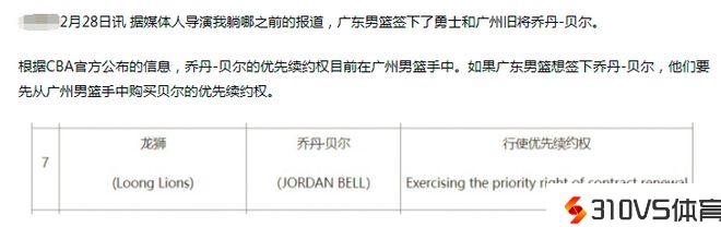 乔丹-贝尔身高2米03,年龄29岁,正值生涯巅峰,虽然进攻端手腕不多,但防卫比拟积极,也能吃饼,可以在周琦下场之后,为广东队禁区提供一定的保证。不过,由于贝尔上赛季效能于广州队,他的优先续约权目前在广州男篮手中。假设广东队想签下乔丹-贝尔,他们要先从广州男篮手中购置贝尔的优先续约权。