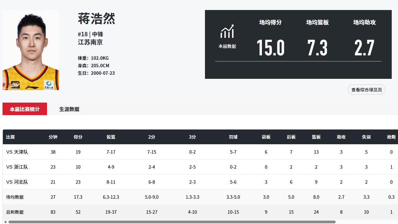 从数据来看,江苏队3人得分上双,蒋浩然39分14篮板,闫实15分4篮板6助攻,郑祺龙12分8篮板。