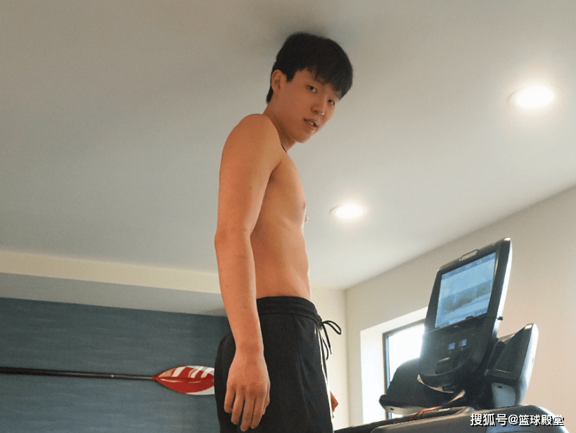 这里最搞笑的一张照片就是他在站上跑步机的时候,头都快顶到天花板,这就很有意思了。估计杨瀚森跑步都没法跑,也不得不说这房间的层高确实是矮,杨瀚森这样的内线去太艰难了。