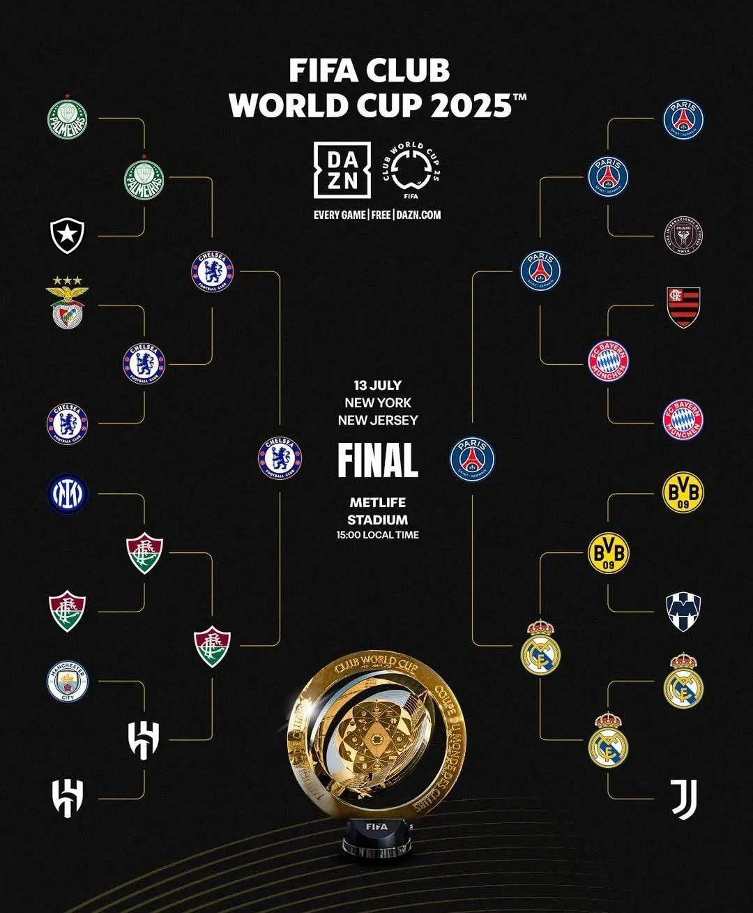 2025年国际足联俱乐部世界杯作为改制后的首届赛事,将参赛队伍从7支扩军至32支,赛程跨度近一个月,成为俱乐部足球领域规模空前的全球性盛宴。这项赛事的改革不仅是竞技层面的升级,更标志着国际足联试图通过“俱乐部世界杯”重塑全球足球版图的野心——当奥克兰城的业余球员与拜仁慕尼黑的巨星同场竞技,当沙特利雅得新月与墨西哥帕丘卡交换球衣,足球的沟通边界被彻底打破。决赛在纽约大都会体育场举行,这座可容纳8.2万名观众的美式足球场,将见证巴黎圣日耳曼与切尔西为新版世俱杯首座王冠展开终极争夺。