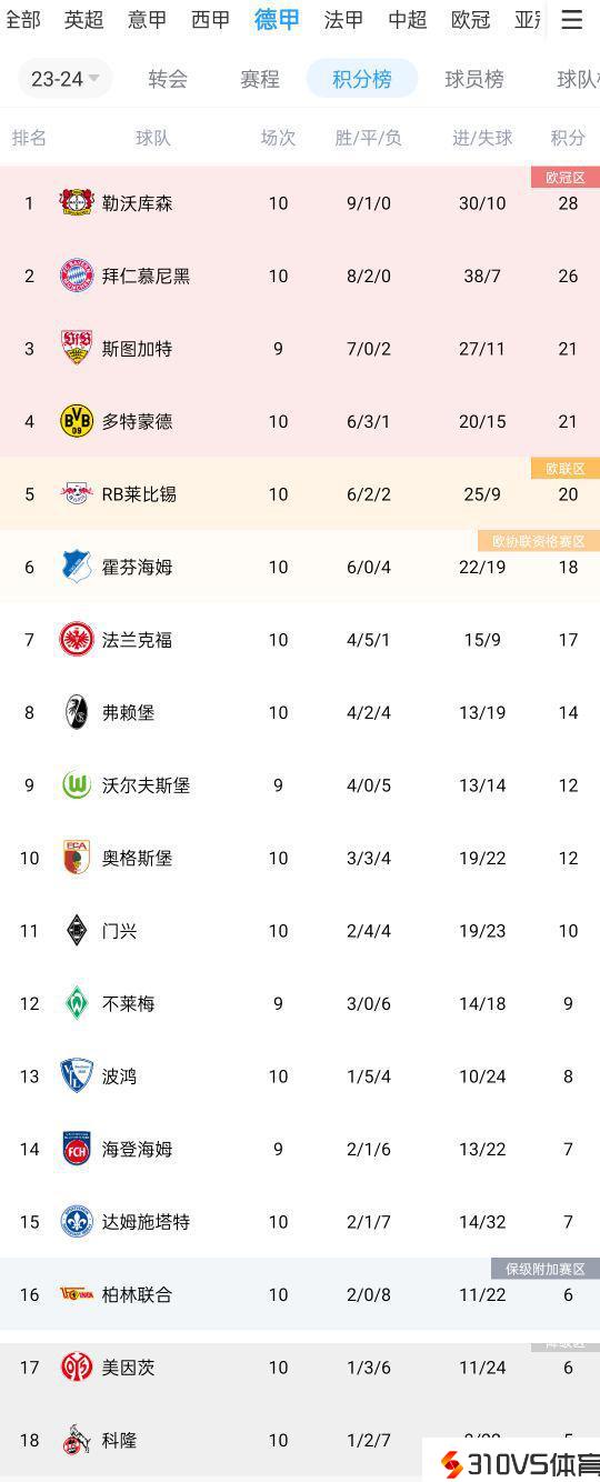 德甲 沙尔克04 云达不莱梅 斯图加特 拜仁慕尼黑 沃尔夫斯堡 勒沃库森 多特蒙德 门兴格拉德巴赫 RB莱比锡 霍芬海姆 法兰克福 柏林联合 汉诺威96 弗赖堡 奥格斯堡 美因茨 科隆 柏林赫塔 凯泽斯劳滕 卡尔斯鲁厄