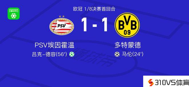 PSV埃因霍温vs多特蒙德全场数据:射门数14-8,射正数4-5