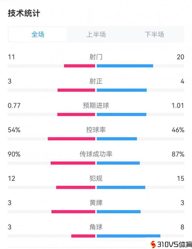 皇马1-1莱比锡全场数据:射门11-20,射正3-4,犯规12-15