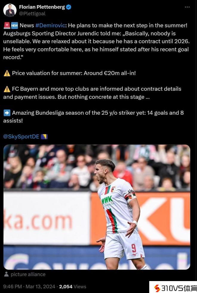 记者:奥堡前锋德米洛维奇被引荐给拜仁等队,转会费约2000万欧