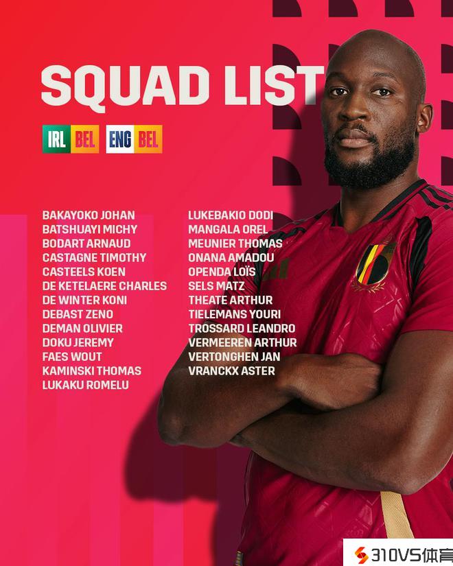 比利时队新一期大名单:卢卡库领衔,德布劳外伤缺