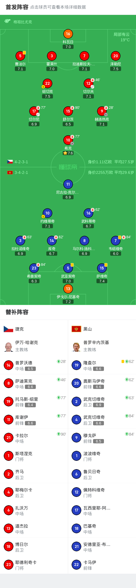 第23分钟,捷克球员切尔夫助攻赫洛热克打入一球。