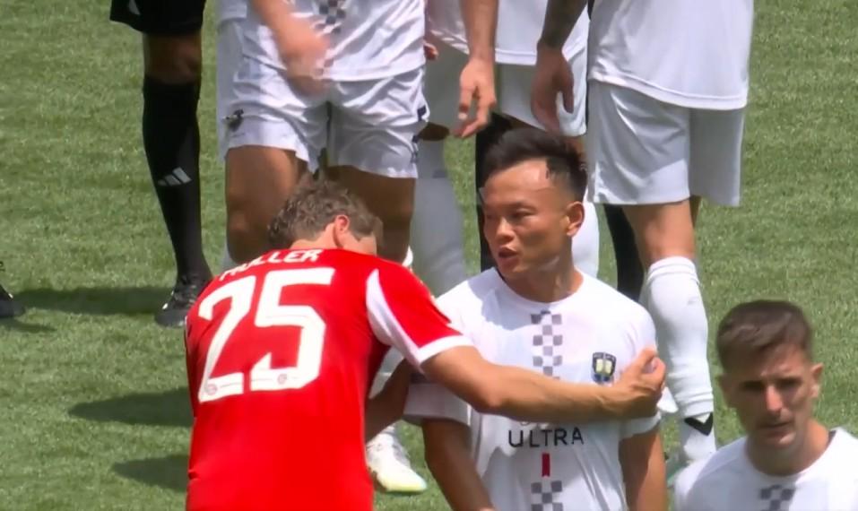 赛后,镜头记录了有意思的一幕:拜仁球员穆勒仔细观察了周通背后球衣上的印字,并和他进行了交流。有网友认为,这是周通在赛后试图和穆勒交换球衣,但遭到了拒绝。一位网友发表了一篇文章,说“周通赛后试图交换球衣,连遭穆勒凯恩拒绝”。