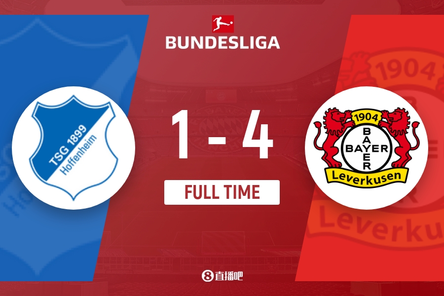 全场比赛结束,勒沃库森客场4-1击败霍芬海姆。