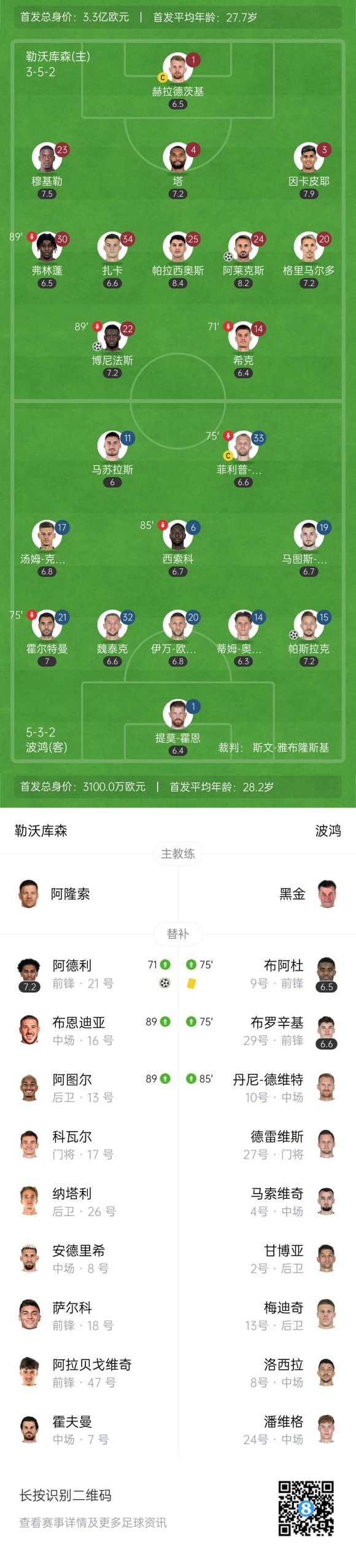 第25分钟,波鸿扳平比分!扎卡回传失误马苏拉斯单刀机会推射被赫拉德茨基扑出,第二点弧顶帕斯拉克兜射破门,勒沃库森1-1波鸿。↓