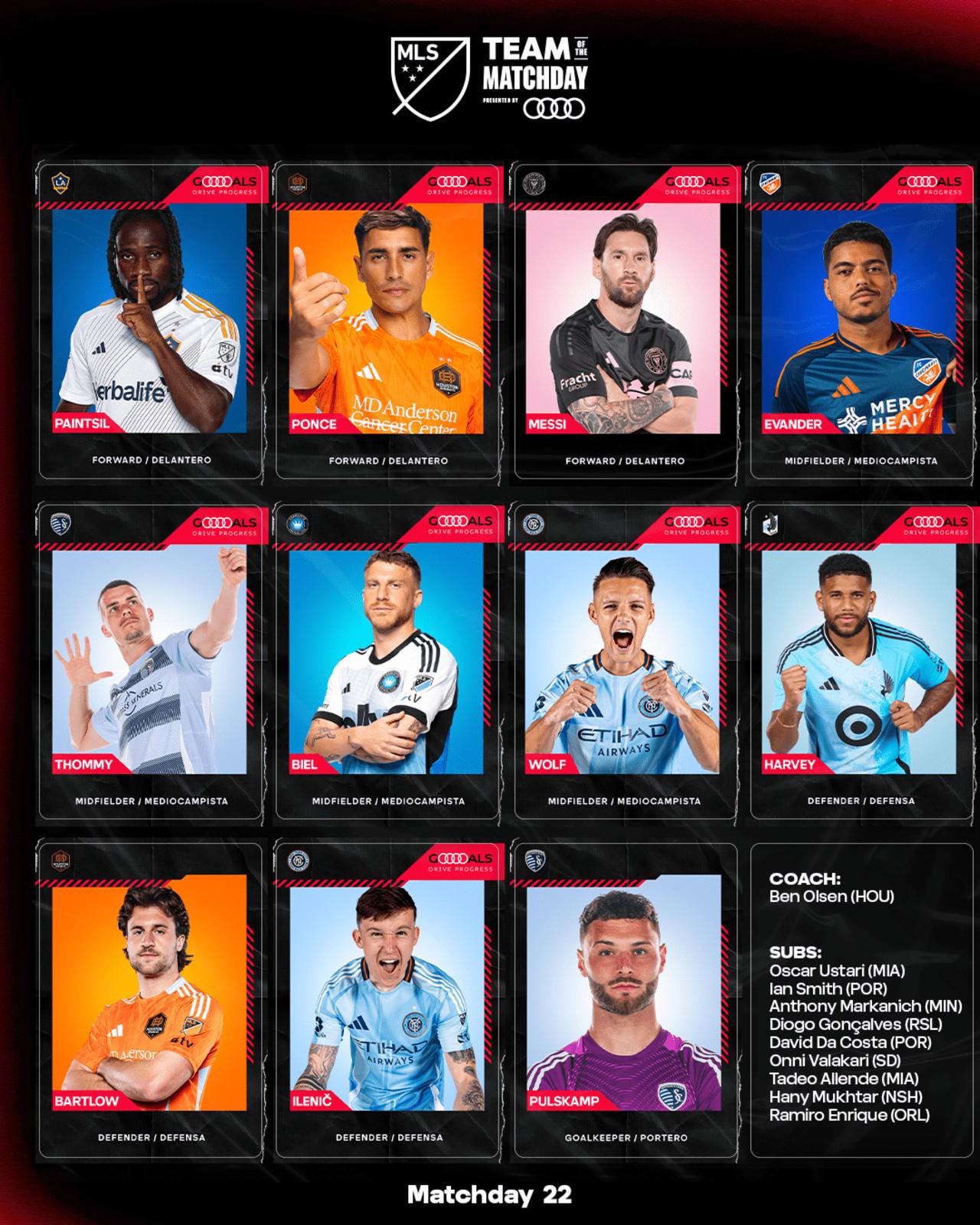北京时间7月8日,美职联官方公布了第22比赛日的最佳阵容,其中梅西领衔,伊万德和沃尔夫入选。