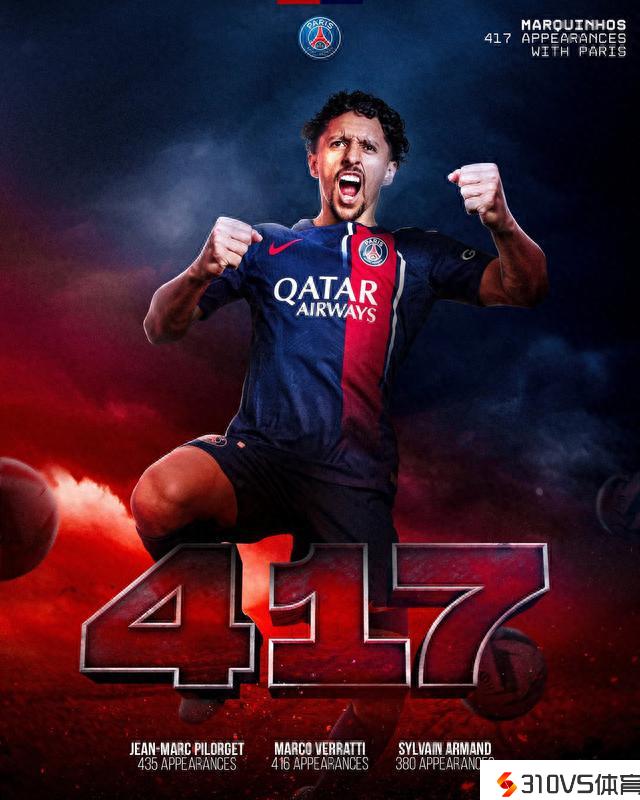 马尔基尼奥斯为巴黎出场417次独占队史第2,本赛季有望破纪录