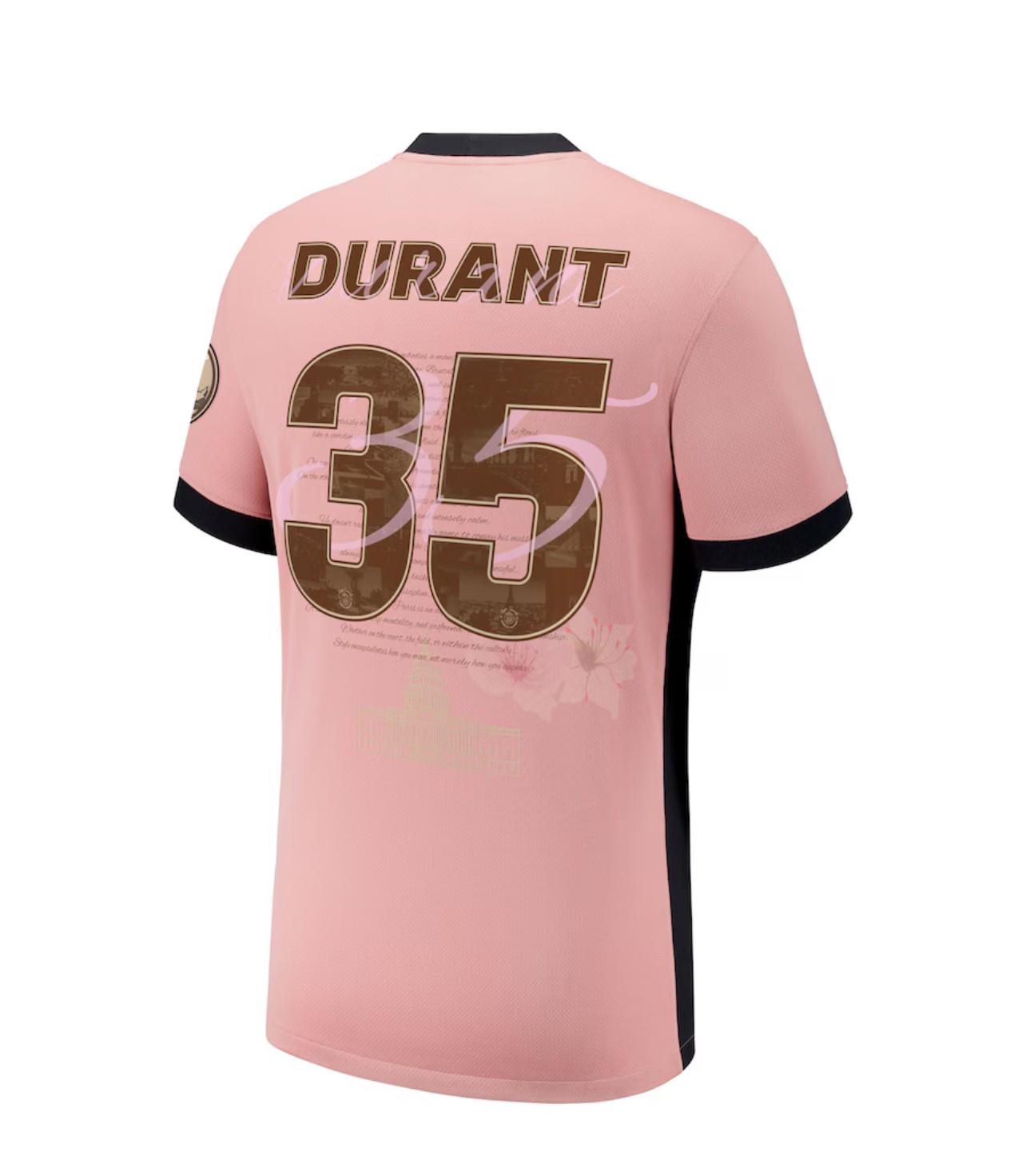 在与NBA球星凯文-杜兰特独家合作的框架下,巴黎圣日耳曼推出了一款独特的球衣,灵感来源于“从华盛顿到巴黎”的主题。这一跨大西洋的融合向杜兰特在华盛顿特区的根源以及巴黎圣日耳曼的巴黎身份致敬。