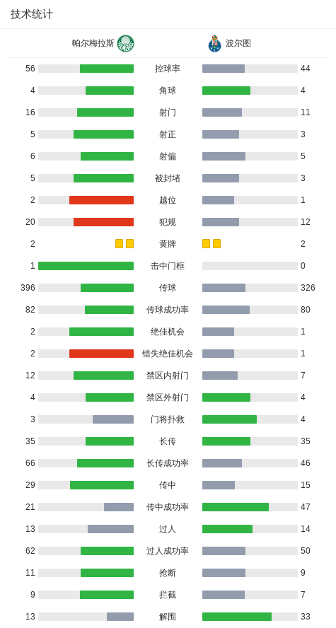 第19分钟,费利佩-安德森差点自摆乌龙,帕尔梅拉斯门将将球托出横梁