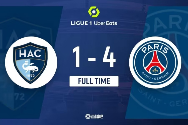 全场比赛结束,巴黎4-1勒阿弗尔。