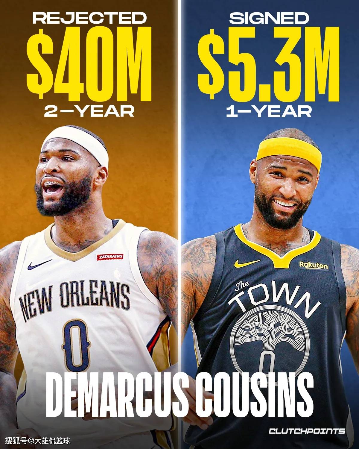 拒绝鹈鹕2年4000万美元的合同,结果在金州勇士队拿着一年530万美元的合同。当时考辛斯在鹈鹕受伤,鹈鹕给出的合同,已经很不错了。结果,他索要更大的合同,这也是导致鹈鹕不得不放弃他。考辛斯加入金州勇士队,想要夺冠复仇鹈鹕,结果金州勇士队总决赛不敌猛龙,错失总冠军。从那以后,他也是颠沛流离,甚至一度只能跑到海外去打球。