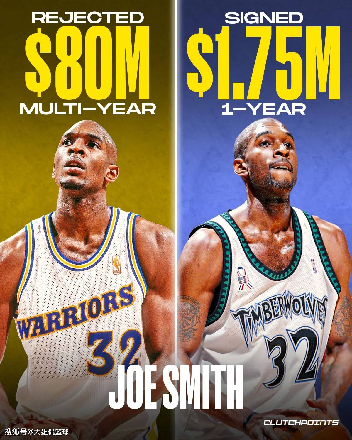 乔史密斯拒绝了金州勇士队多年合同,要知道那可是8000万美元的合同。结果他以一年175万美元的合同,加入森林狼。后来,他多次降薪续约森林狼,引起了不少球迷媒体的注意,联盟甚至介入调查,发现存在阴阳合同,于是没收了森林狼5年的首轮选秀权。