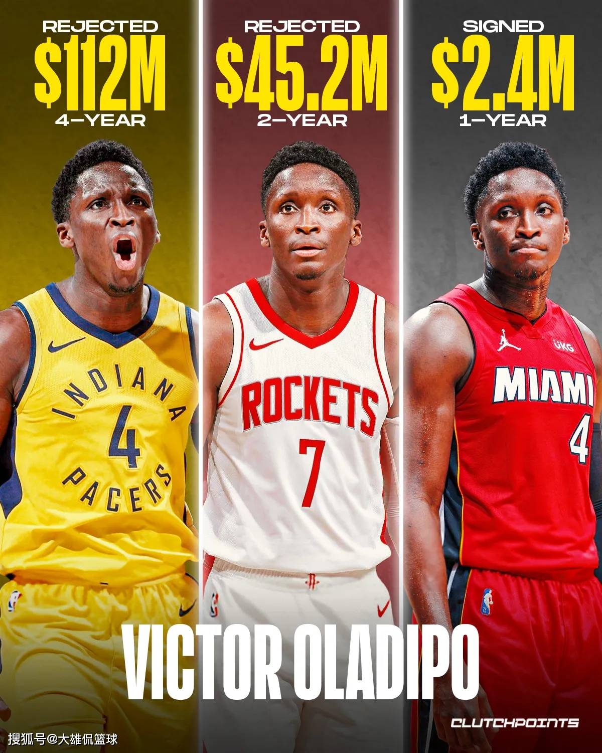 拒绝步行者4年1.12亿美元的合同,结果在火箭拿到了2年450万美元的合同,还有就是在热火拿到了一年240万美元的合同。不过,奥拉迪波拿到过交易否决权。