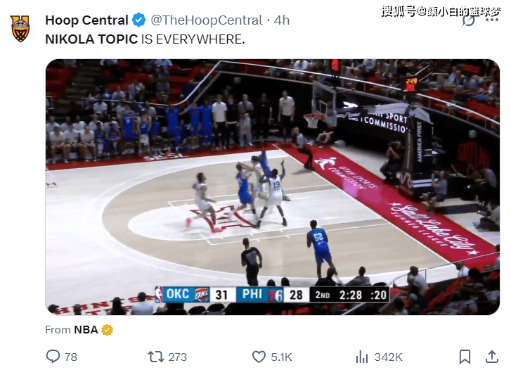 美媒:托皮奇是一名出色的防守球员,他已经让众多NBA球队感到恐惧,他能完美结合组织进攻与防守,当他持球进攻时威胁非常大,雷霆又得到一件有力武器,而且他只是新秀合同第二年。