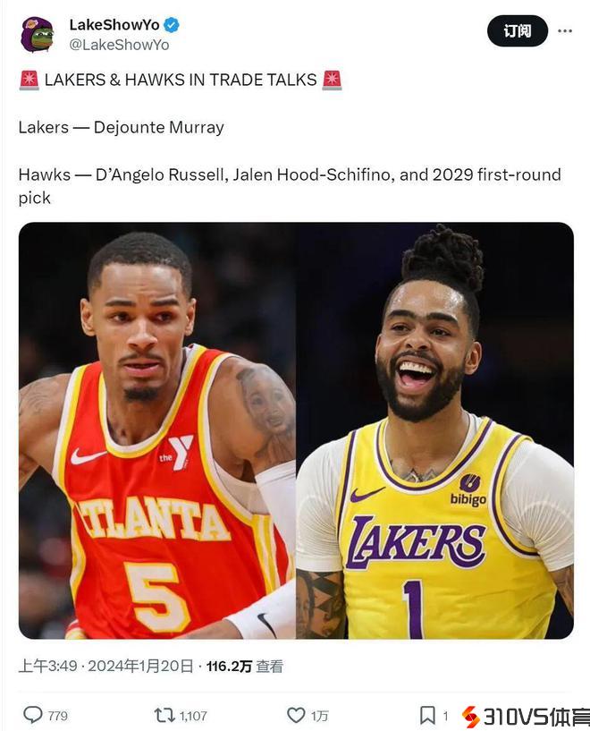 希菲诺虽然是2023年的17号秀,但本赛季打得这么烂,老鹰怎样能够接手?Jovan Buha表示,思索到希菲诺的生涯才刚刚末尾,湖人觉得他相当于一个首轮签。也就是说,湖人觉得自己是拿拉塞尔+2个首轮签去换默里,曾经足够有诚意。