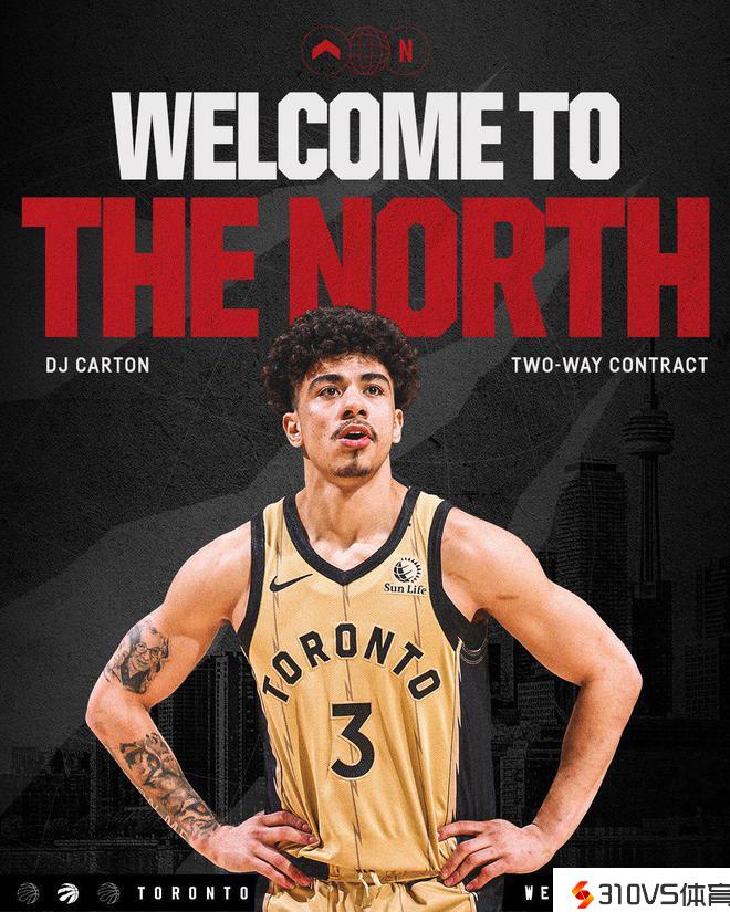 猛龙官方:球队与后卫DJ-卡顿签下一份双向合同