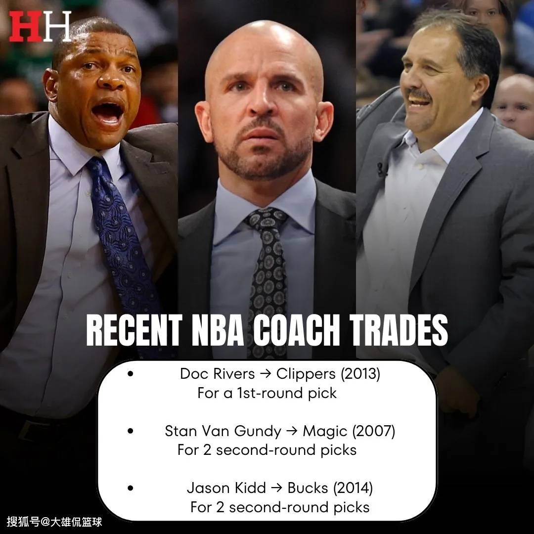 其实,NBA教练是可以在NBA交易的,但会相当复杂。密尔沃基雄鹿的现任主教练里弗斯,就曾被交易过。当年,他带领凯尔特人夺冠后,没几年,就因为凯尔特人和洛杉矶快船达成交易,成为了快船的主教练和管理层。