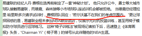 所以球迷可以清晰看到姚明,易建联这些选秀非常靠前的内线球员,基本上都不会参加频繁的NBA球队试训,尤其是姚明直接是新秀联合试训的方式邀请不同的NBA球队现场考察,根本不需要舟车劳顿,而易建联也是目标非常明确,除了心仪球队,其他清一色拒绝试训。