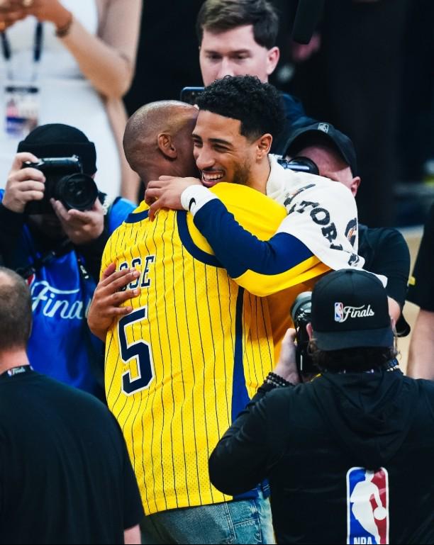 赛后,步行者当家后卫哈利伯顿与到场观战的步行者传奇球星雷吉-米勒紧紧相拥。值得一提的是,米勒曾在2000年率领步行者杀入总决赛,最终2-4不敌湖人屈居亚军。