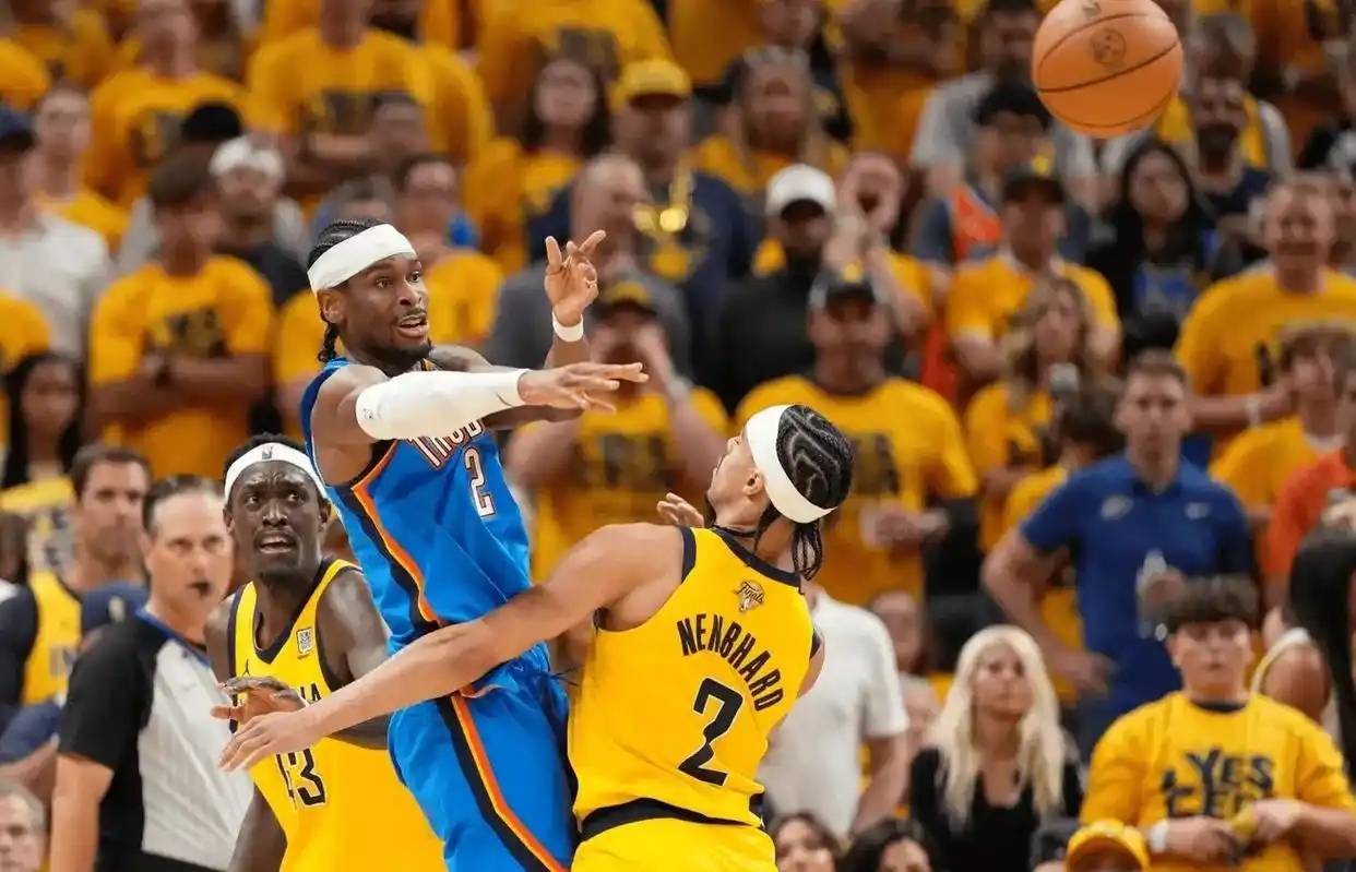 在这之前,雷霆队在总决赛里比分是3 - 2领先,以不小的优势拿到了冠军点。不过步行者队一点没退缩,这场比赛全队一起使劲,打出了气势。靠着精准的三分和不错的内线进攻,把比分反超,上半场结束时大幅度领先。下半场,步行者队接着保持优势,最后以108比91大胜雷霆队,把总比分扳成3比3平,系列赛被拖进了决胜第七场。