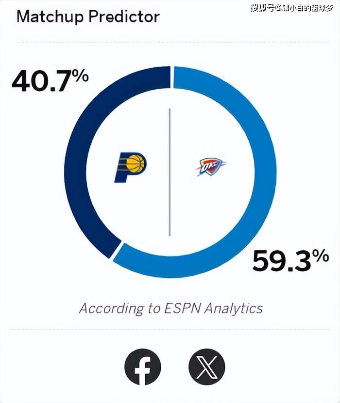 就连ESPN也给了雷霆抢七主场赢球概率59.3%,步行者只有40.7%,步行者如果能在俄城爆冷就会创造历史。
