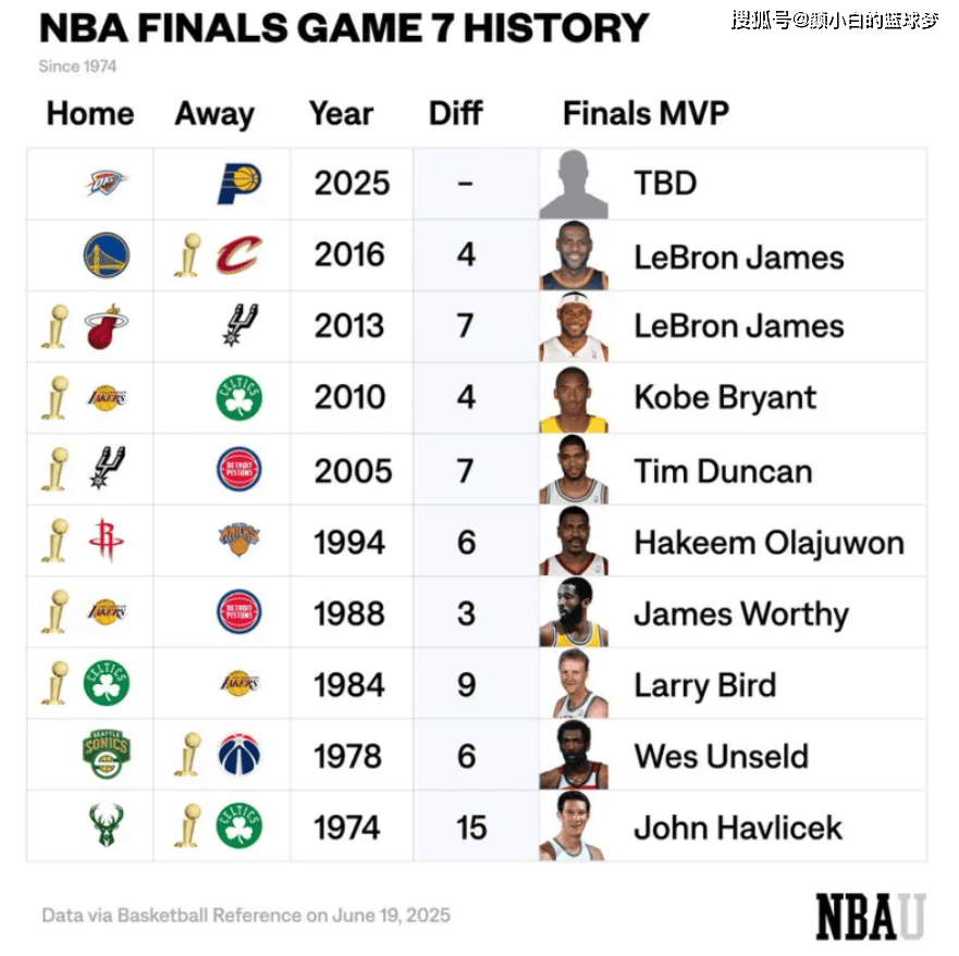 自1974年以来,总决赛3-3客队赢球的只有三支,如果2025年的步行者成为第四支就会创造51年纪录,过去51年总决赛第四支客队拿下总冠军。