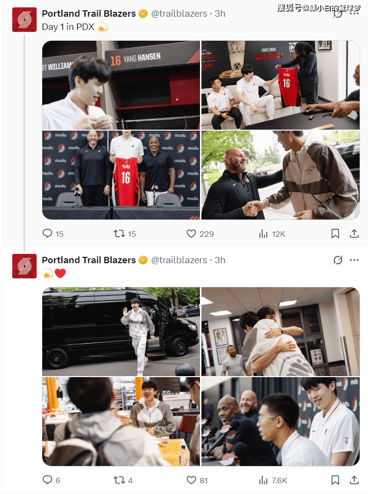 很明显杨瀚森已经成为开拓者的团宠了,甚至是撕裂之城的团宠,自6月26日杨瀚森16顺位被选中以来,开拓者官方的27条推文有25条是杨瀚森。
