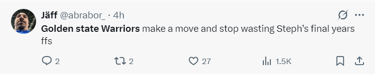 库里球迷:勇士队应该出手了,不应该继续浪费库里的巅峰期,就这么简单明了都不懂吗?