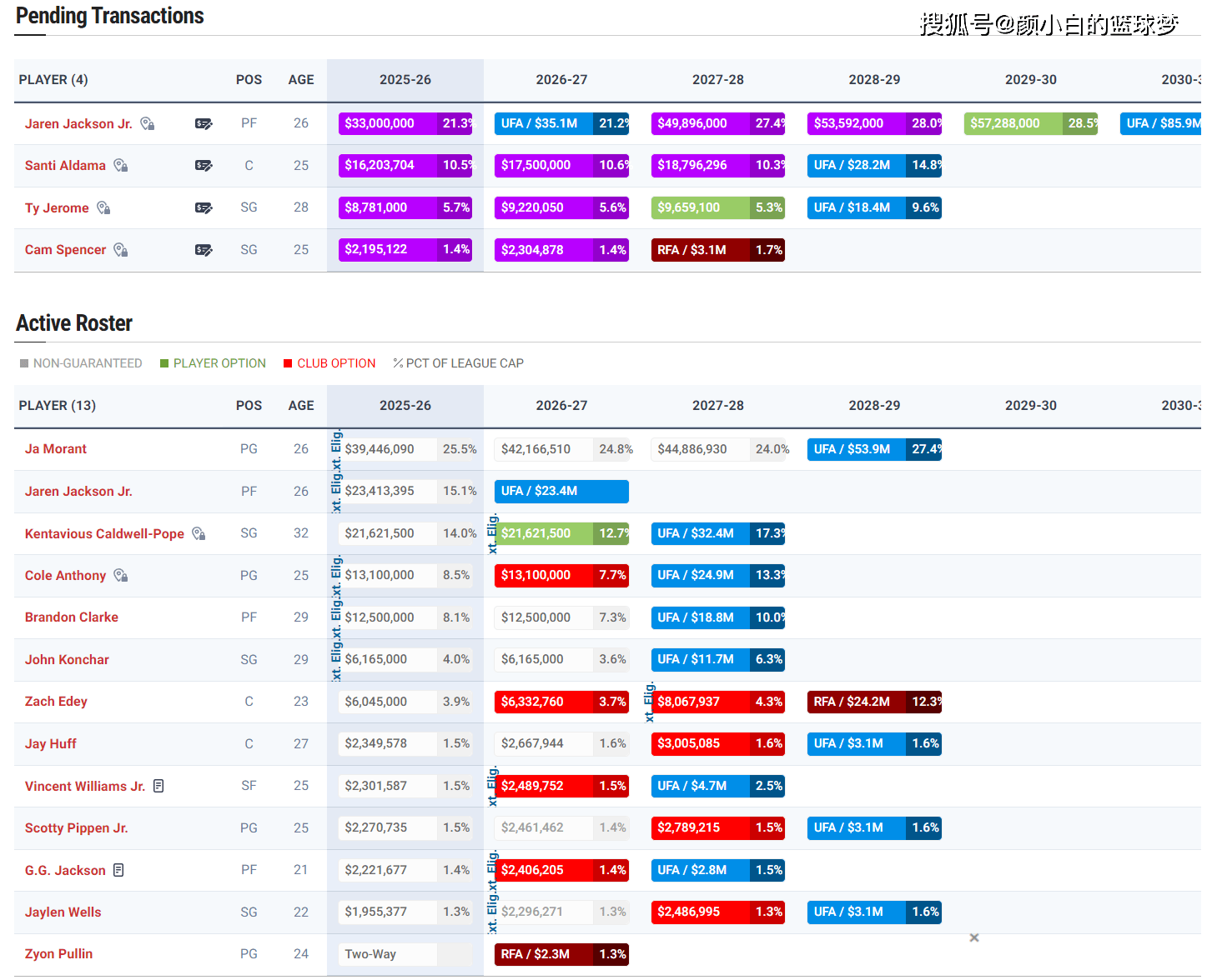 灰熊豪掷3.25亿签4人:小贾伦顶薪细节确定16人名单3新秀还未签约
