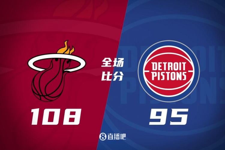 一开场,热火率先发力打出9-2的开局,活塞内外开花迅速追赶并完成反超,此后双方陷入缠斗,比分交替领先,阿德巴约高效输出,杜伦毫不示弱,热火一波9-0占据主动,活塞不断冲击篮筐顽强咬住,半场战罢热火56-54领先2分。下半场,活塞命中率骤降,热火内外开花趁势获得两位数优势,末节热火持续发力一举将分差拉开到20分,活塞大势已去无力回天。最终,热火108-95击败活塞,结束了自己的4连败。