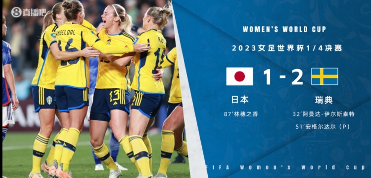 全场比赛结束,日本1-2瑞典。