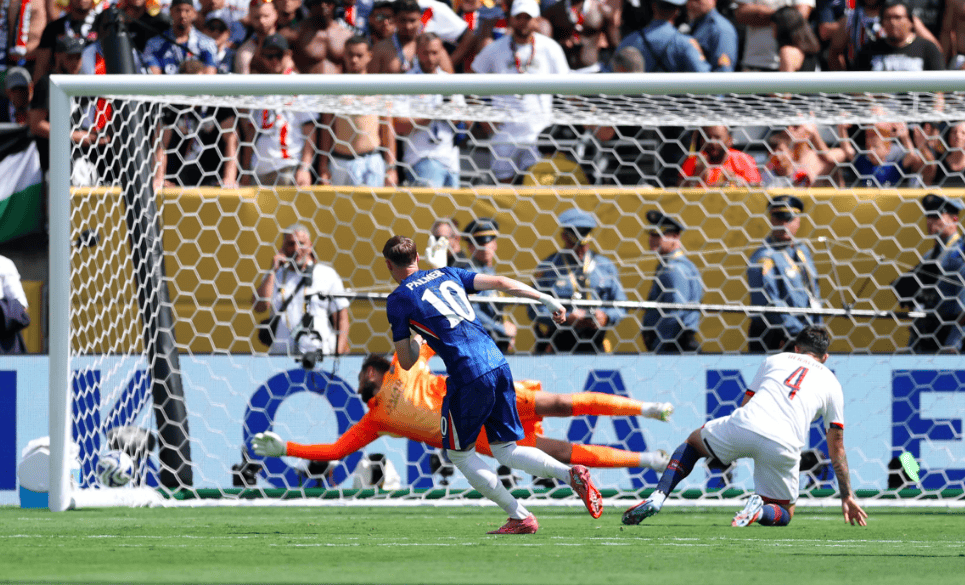马雷斯卡的战术起到奇效,高位逼抢全线压上的切尔西,完全压制巴黎圣日耳曼。在开场错失一次绝佳机会后,帕尔默开始发威。