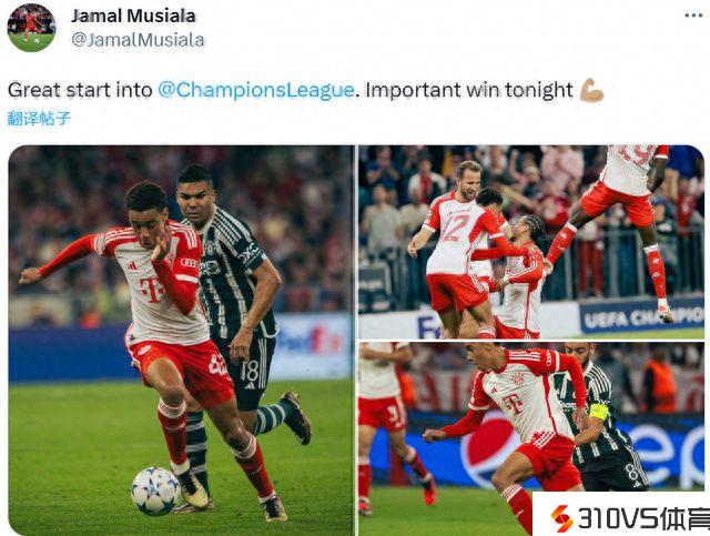 穆西亚拉社媒晒照:重要的成功,为本赛季欧冠开了一个好头!