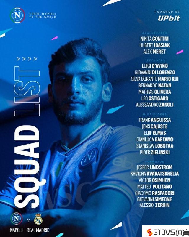 那不勒斯欧冠战皇马大名单:奥斯梅恩、KK领衔;泽林斯基在列