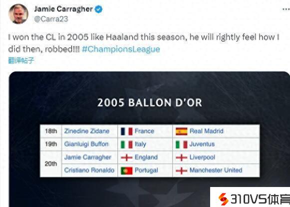 05年金球和C罗并列,卡拉作风侃:我和哈兰德一样拿了欧冠,被抢了