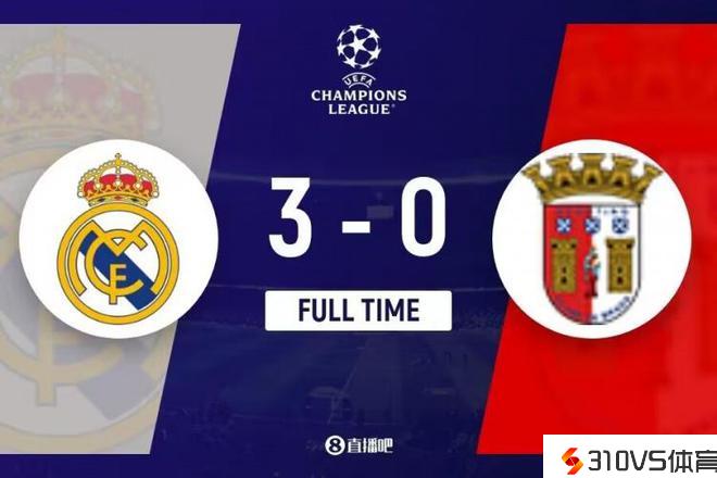 欧冠-皇马3-0布拉加4连胜出线 巴西双星传射迪亚斯破门卢宁扑点