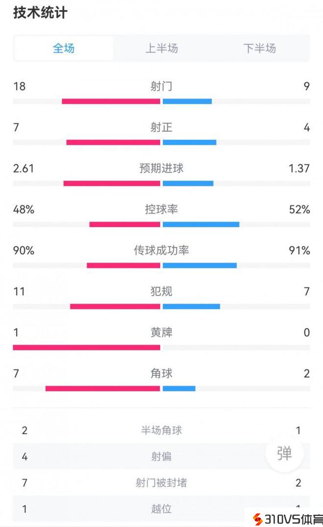 皇马3-0布拉加全场数据:射门18-9,射正7-4,控球率48%-52%