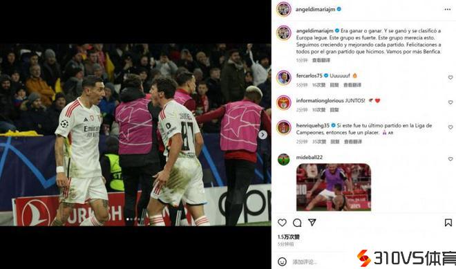 传射建功助队取胜!迪马利亚社媒庆贺成功:本场只要获胜一条路!