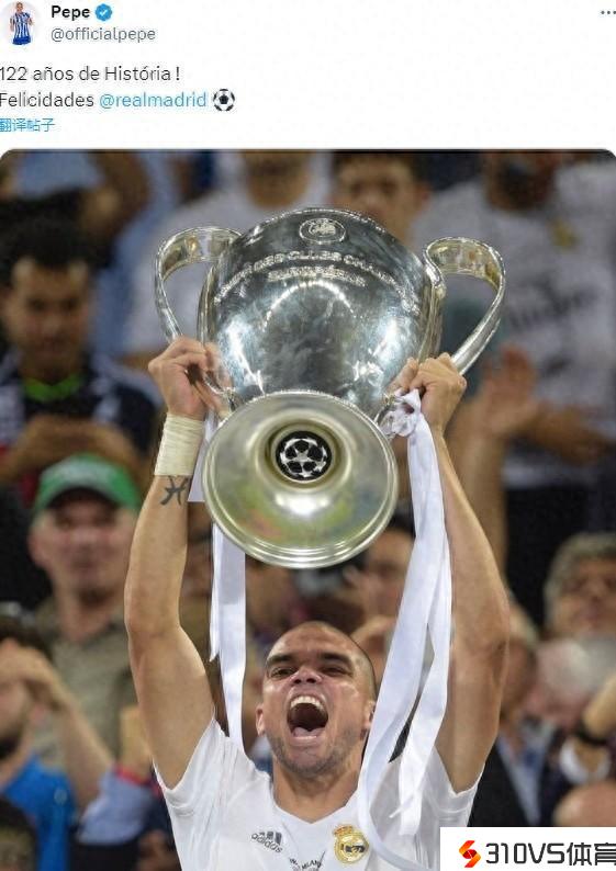 佩佩高举欧冠冠军奖杯庆贺皇马122周年:122年的悠久历史