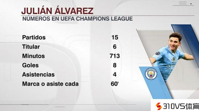 高效!阿尔瓦雷斯欧冠出场713分钟8球4助,每60分钟参与1球