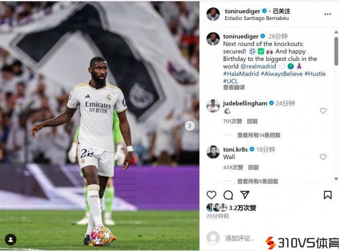 吕迪格社媒晒照庆贺晋级:祝世界最伟大俱乐部生日快乐