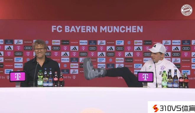 踢伤脚趾,图赫尔在发布会上抬腿展现右脚穿着的维护靴