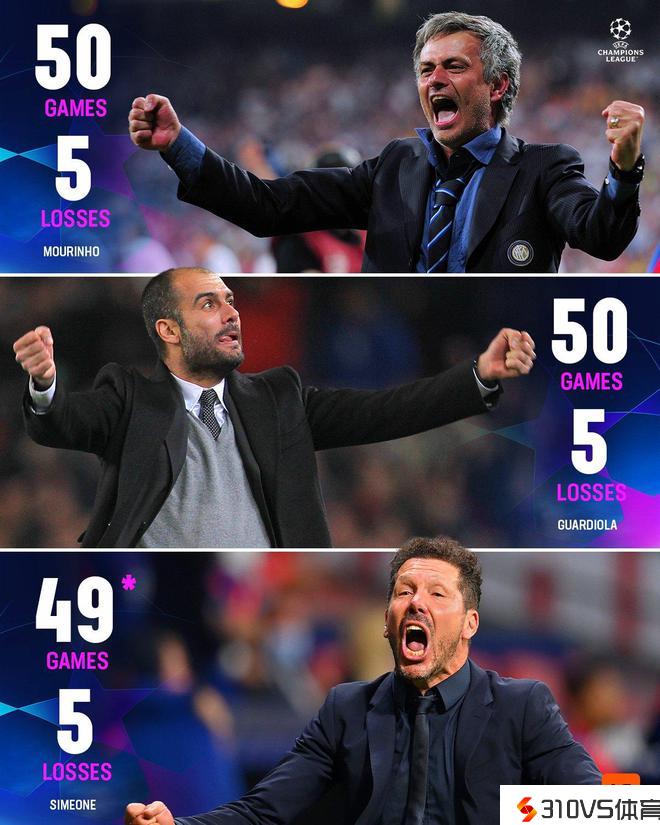 目前,欧冠教练前50场主场竞赛最少失利纪录由穆里尼奥和瓜迪奥拉坚持,两人在头50场主场欧冠竞赛中都只吃到5场败仗。